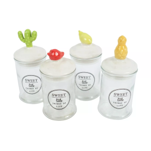 Set van 4 glazen voorraadpotjes met keramieken deksels